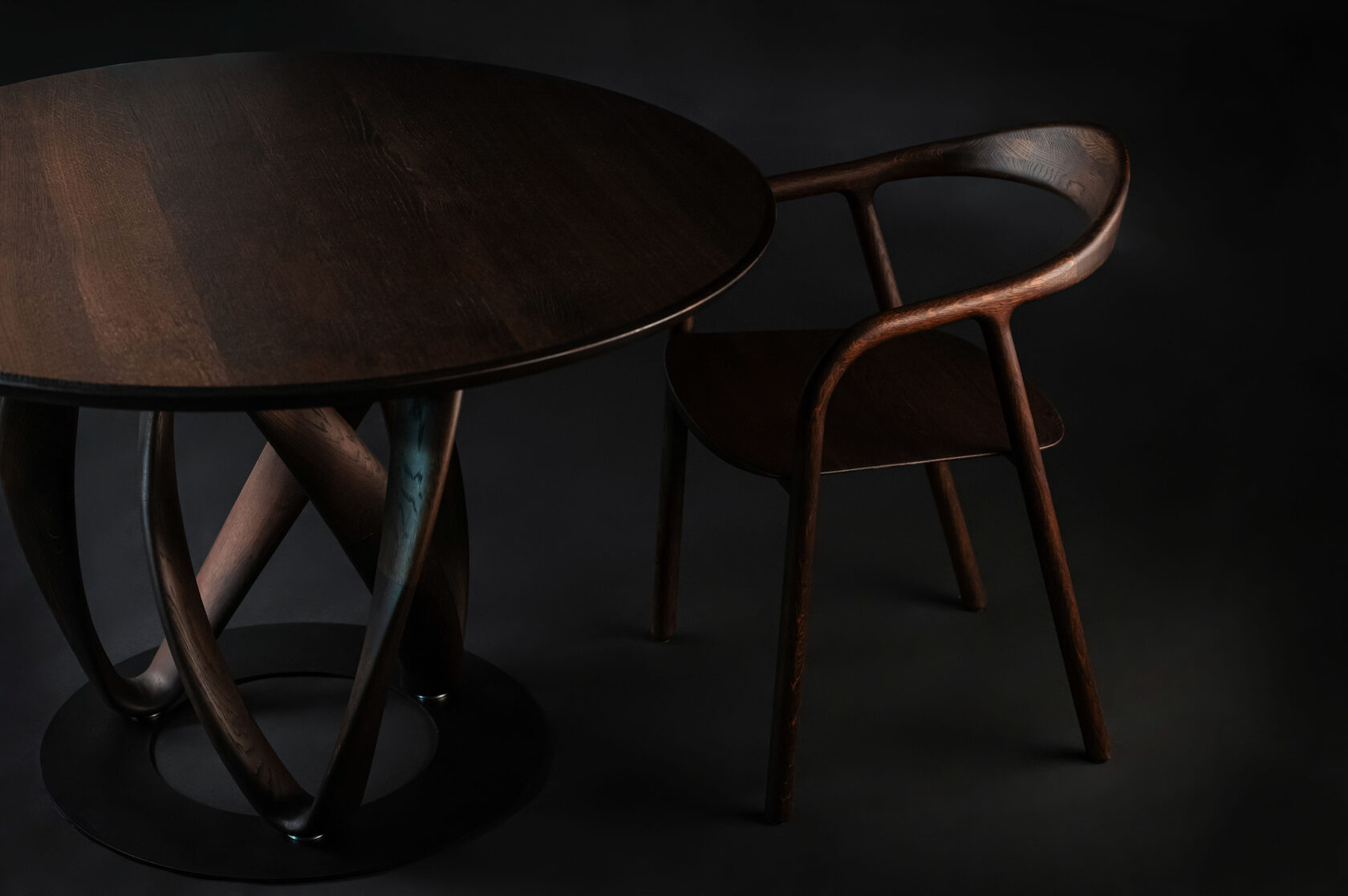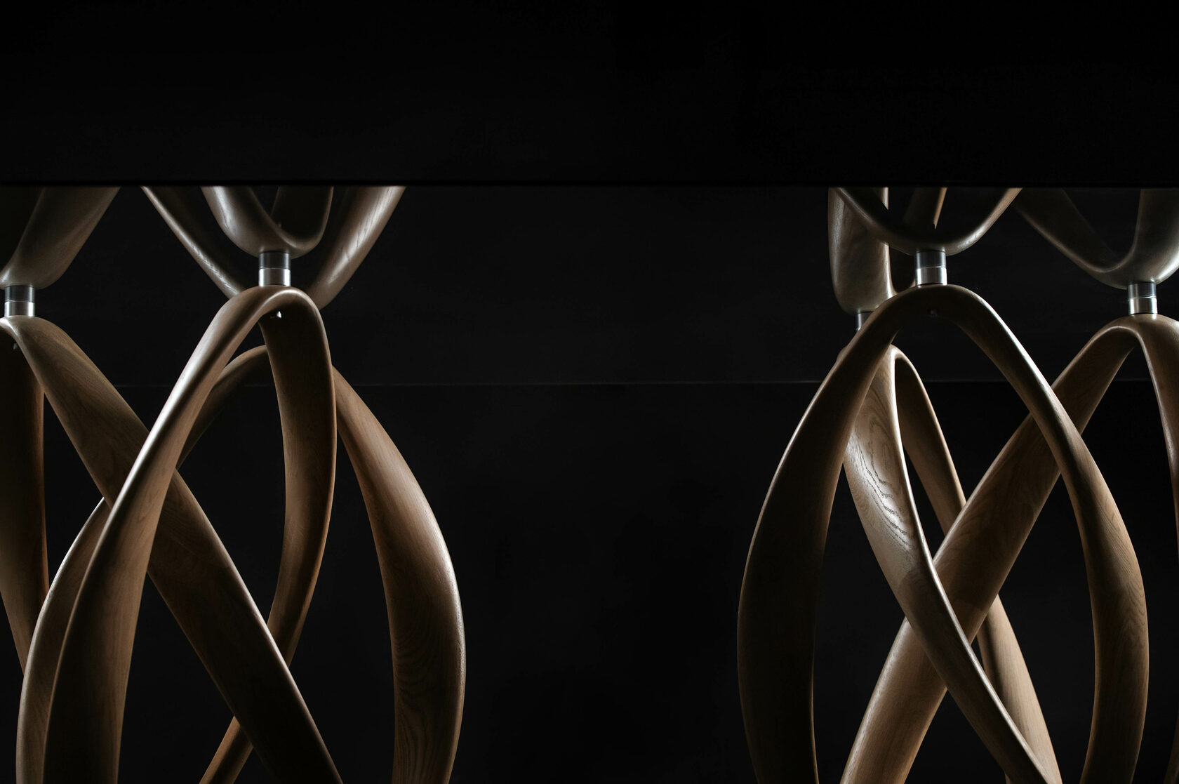 Glass top over a stunningly designed oak base. Two pairs of sculpture-style solid oak rims hold the clear glass up, creating the perfect statement piece while the stainless steel base ensures stability. Each detail on this dining table is perfectly designed for your home.