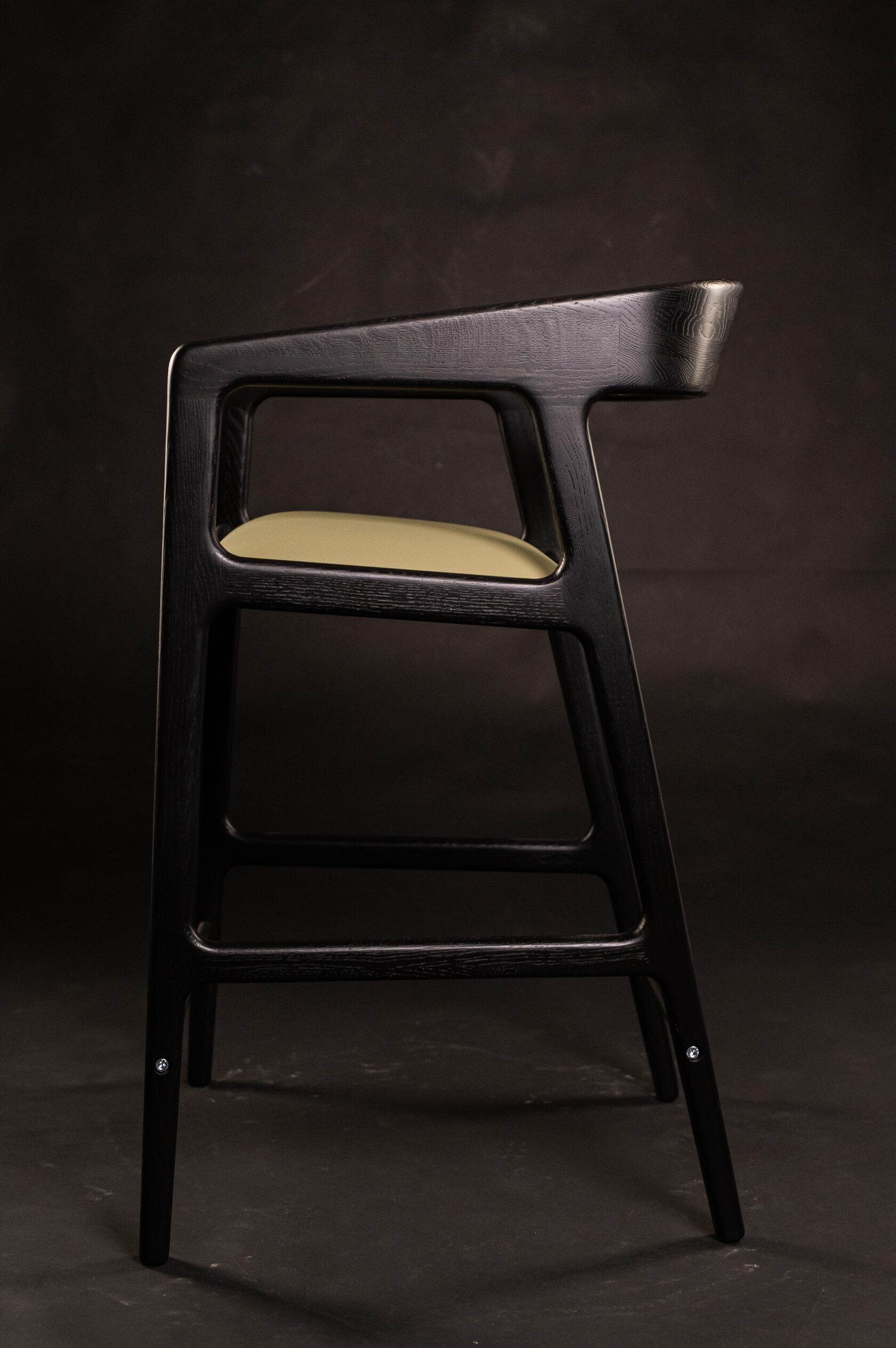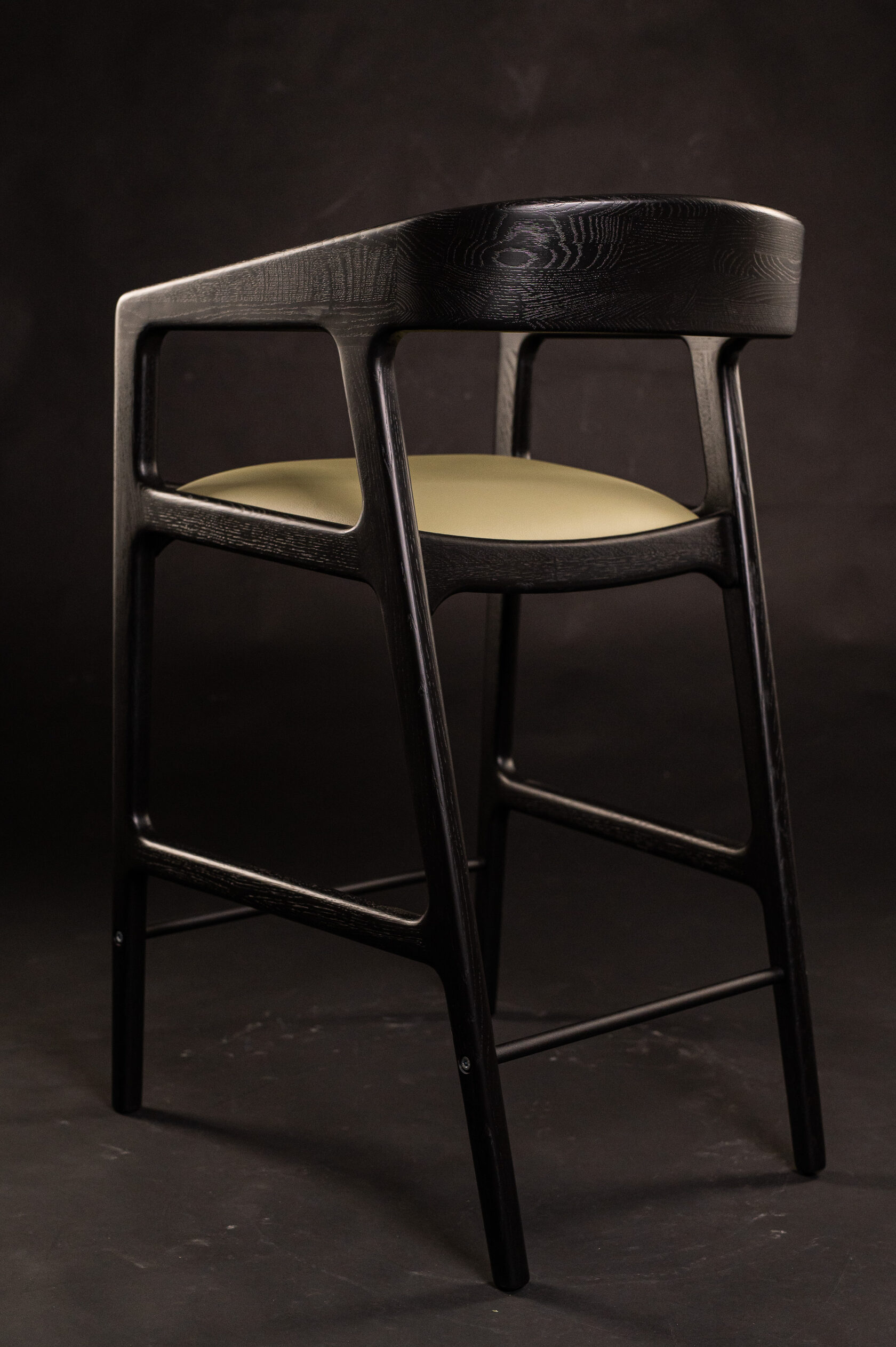 The OLD bar stool features a traditional, four legged base in tapered design. It is topped with a square seat that introduces tactility to the design. A footrest is integrated into the legs.