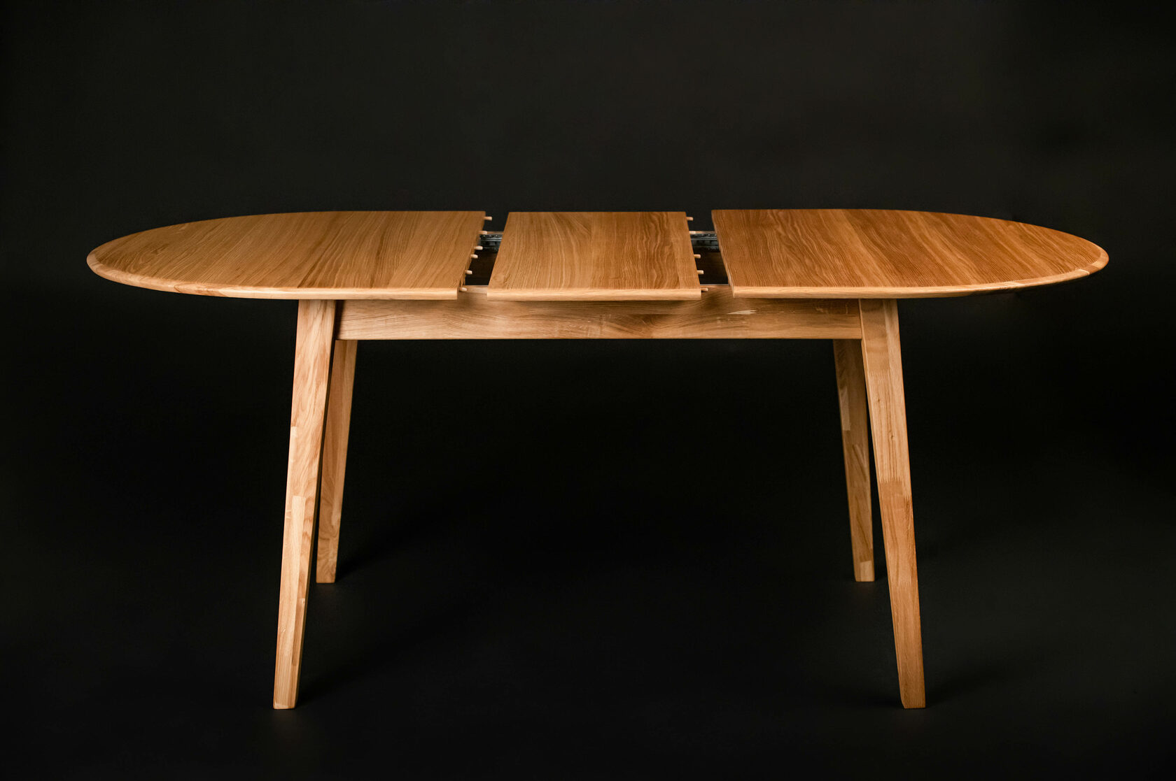 Solid, yet light; understated, yet impressive- The Valsugana table brings together functionality, versatility and elegant simplicity. With its softly curved edge top, the Valsugano solid oak oval extending dining table brings a graceful feel to the dining room. Outstandingly crafted from 100% solid oak, this flexible table will complement any room setting.